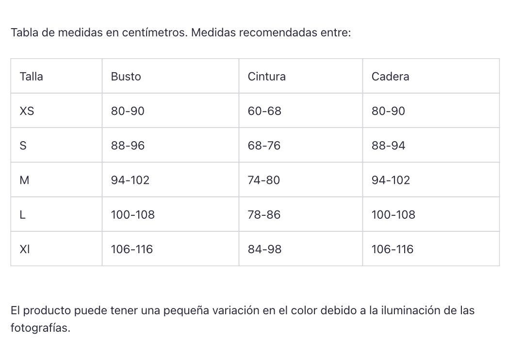 Talla | Busto | Cintura | Cadera |